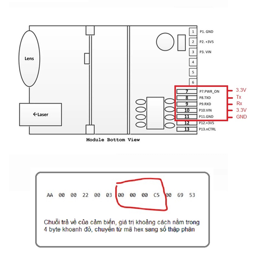 Cảm biến khoảng cách Laser 50m giao tiếp UART 3.3V