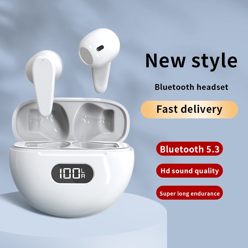[SALE] Tai Nghe Bluetooth 5.3 Màu Trắng Chống Nước IPX5 Kèm Cáp Sạc Type-C Đèn Led Báo Dung Lượng Pin
